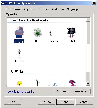 เลือก Wink ที่ต้องการแล้วคลิกปุ่ม Send
